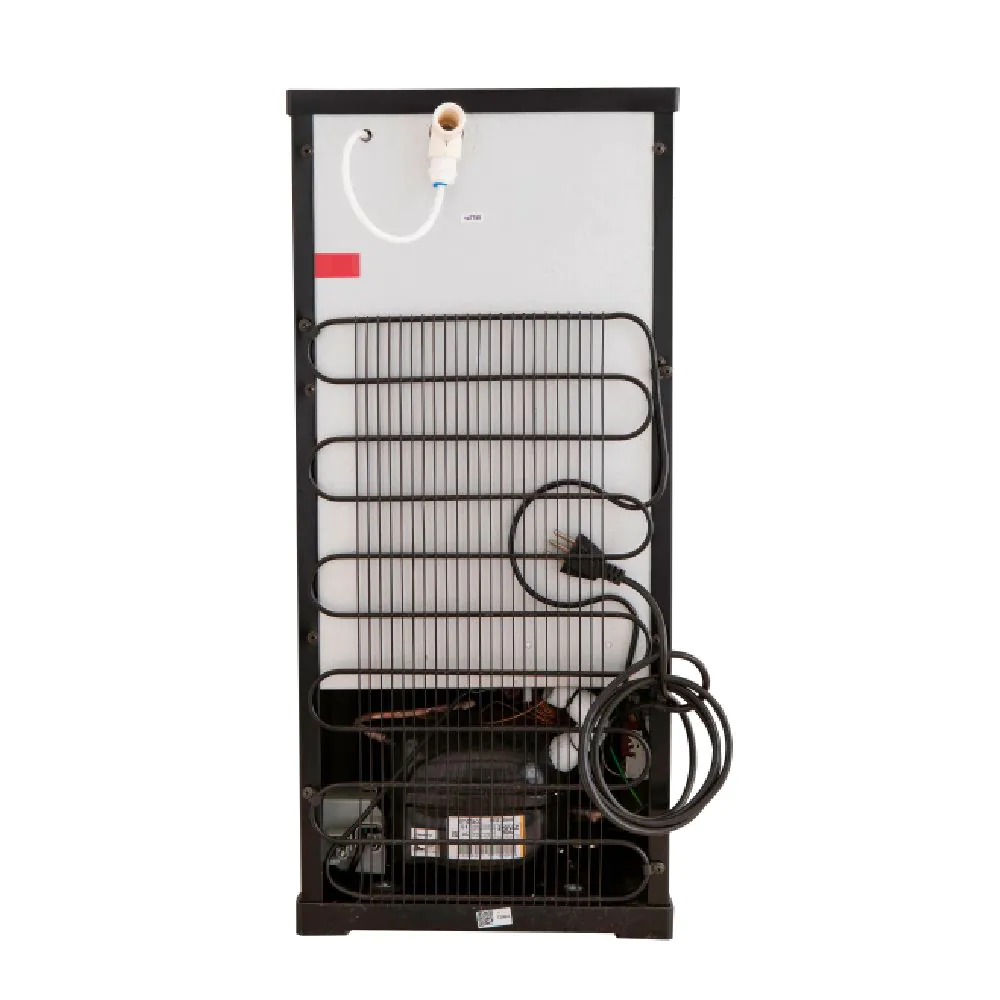 Esse modelo é equipado com duas saídas de água geladas. A serpentina interna em aço inox 304 proporciona uma refrigeração eficaz, enquanto a unidade condensadora hermética, combinada ao gás ecológico R134A, assegura um funcionamento silencioso e sustentável. O bebedouro conta ainda com boia controladora de nível e termostato com 7 níveis para ajuste manual da temperatura, oferecendo total controle e versatilidade conforme a necessidade do ambiente.