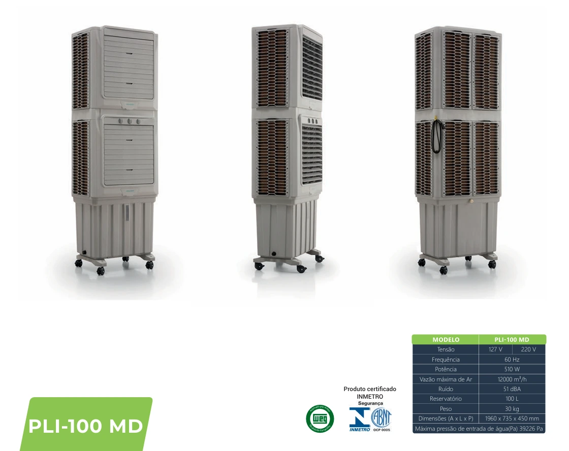 O novo modelo conta com fechamento total das aletas frontais, proteção para bomba com sensor de nível, oscilação automática das aletas internas, exclusivo pré filtro lavável de fácil remoção, é silencioso, possui motor em alumínio, parafusos em aço inoxidável e design moderno e discreto.